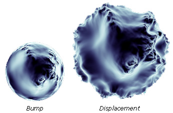 One of the most interesting, powerful, and unique features of RenderMan is the ability to displace the surface geometry during shading. This allows the modeling of true dents, wrinkles, and other rough features which are only approximated by other techniques, such as bump maps. Since the geometry is actually moved by the displacement shader, not only the shading is changed, as in bump mapping, but the silhouette is changed and parts the surface can occlude other parts, just as they do in "real life." Displaced surfaces can also cast displaced shadows. Displacements can also be animated with interesting results. None of these effects can be achieved with bump mapping.