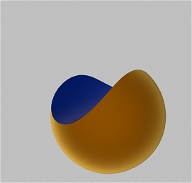 Change the Solid Type to Intersection. Now render. An object is formed from only the area that the objects both occupy. |