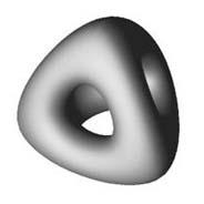 RenderMan for Maya provides complete support for Maya NURBS, including trimmed surfaces. NURBS (or nonuniform rational B-splines) are essentially rectangular 2D patches which are stretched and bent into 3D shapes. Because RenderMan renders true curved surfaces, tessellation is never an issue; NURBS are always smooth.