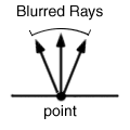 Both reflections and refractions can be blurred. Increasing the value of blur increases size of the ray's sample cone. This allows the creation of blurry reflections, refractions, subsurface scattering, etc. Blurring traces also requires a greater number of samples to be cast from any given point in order to reduce splotchy artifacts.