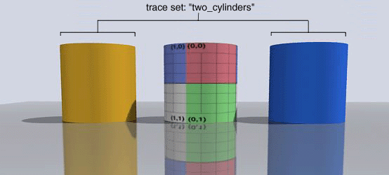 The reflection is limited to the trace set "two_cylinders" and rendered.