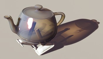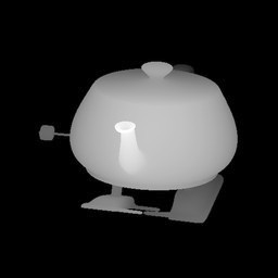 The image on the right is a depth map for the image of the teapot at the top of the page. This depth map was generated as a pre-pass before the final image was rendered. A depth map represents the distance from a specific light to the surfaces the light illuminates. A depth map contains depth info from a light's point of view. Each pixel in the depth map represents the distance from the light to the nearest shadow casting surface in a specific direction.