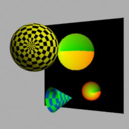 surface schizo ( float Ka=1, Kd=1 ) { uniform string lbl=""; rayinfo("label", lbl); /* base color set by incoming ray label */ if (lbl == "leftsphere") { Ci = color(s,t,0); } else { Ci = Cs; } /* modify base with 'matte' shading */ normal Nf = faceforward(normalize(N),I); Ci *= Os * ( Ka*ambient() + Kd*diffuse(Nf) ) ; Oi = Os; } |