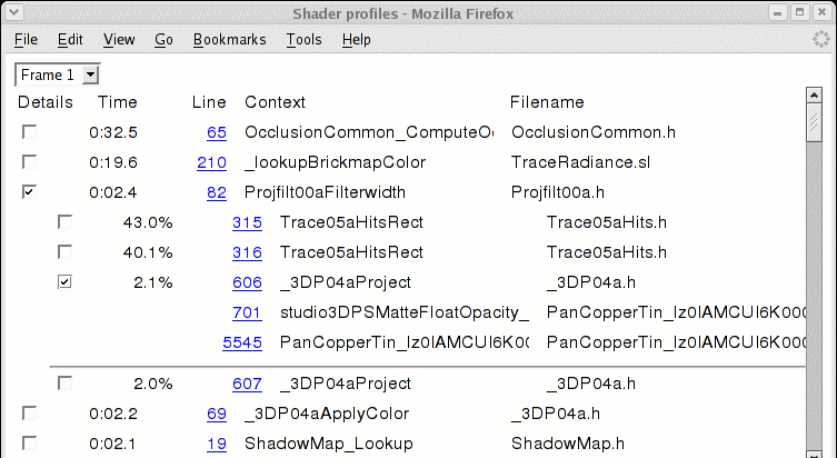 Important: Shaders compiled with older versions of the shader compiler (before Release 13) will not be profiled. The output of the profiler includes a list of any shaders that require recompilation.