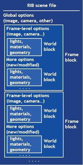 RIB files have a hierarchical organization of scene data.